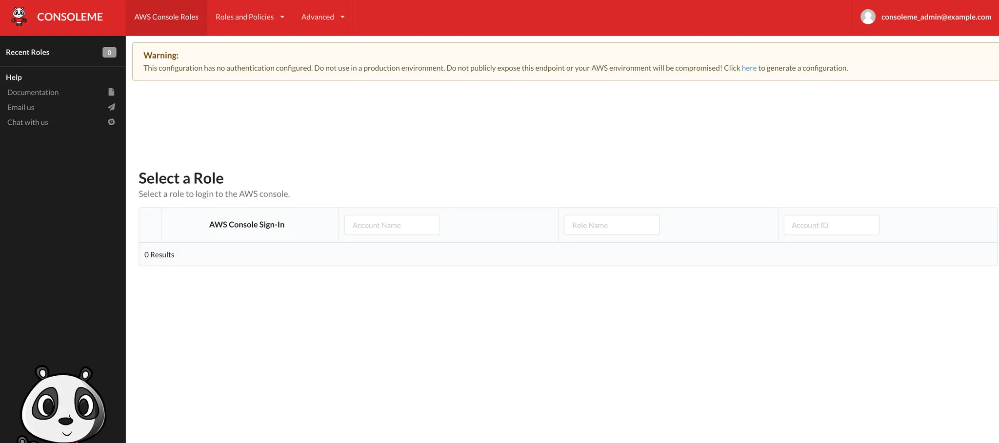 ConsoleMe 최초 화면