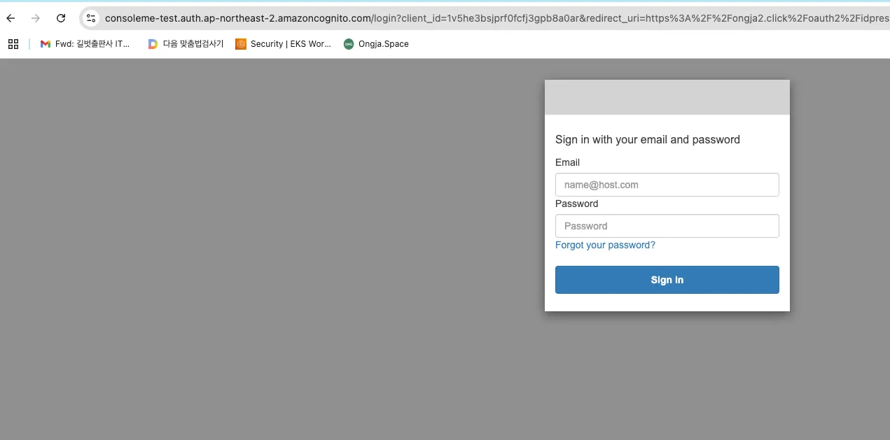 Cognito 도메인 주소로 리다이렉트 되며 로그인 페이지로 접근됩니다.