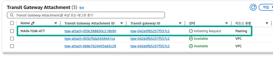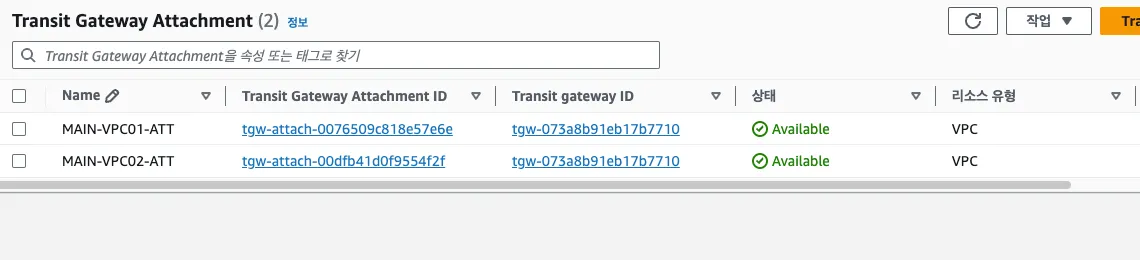 이 번 단계의 실습은 동일 리전에 존재하는 VPC와 TGW 간의 연결을 테스트합니다.