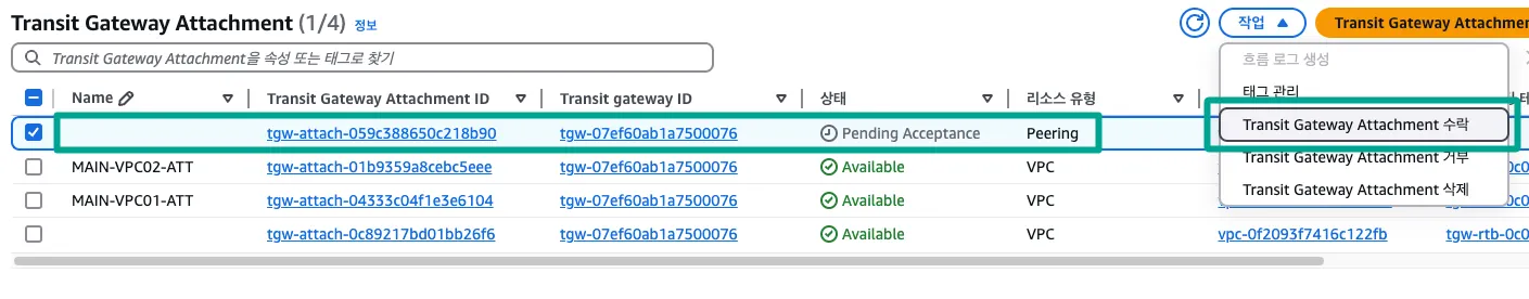 버지니아 북부 TGW 연결에 대상 모두 삭제