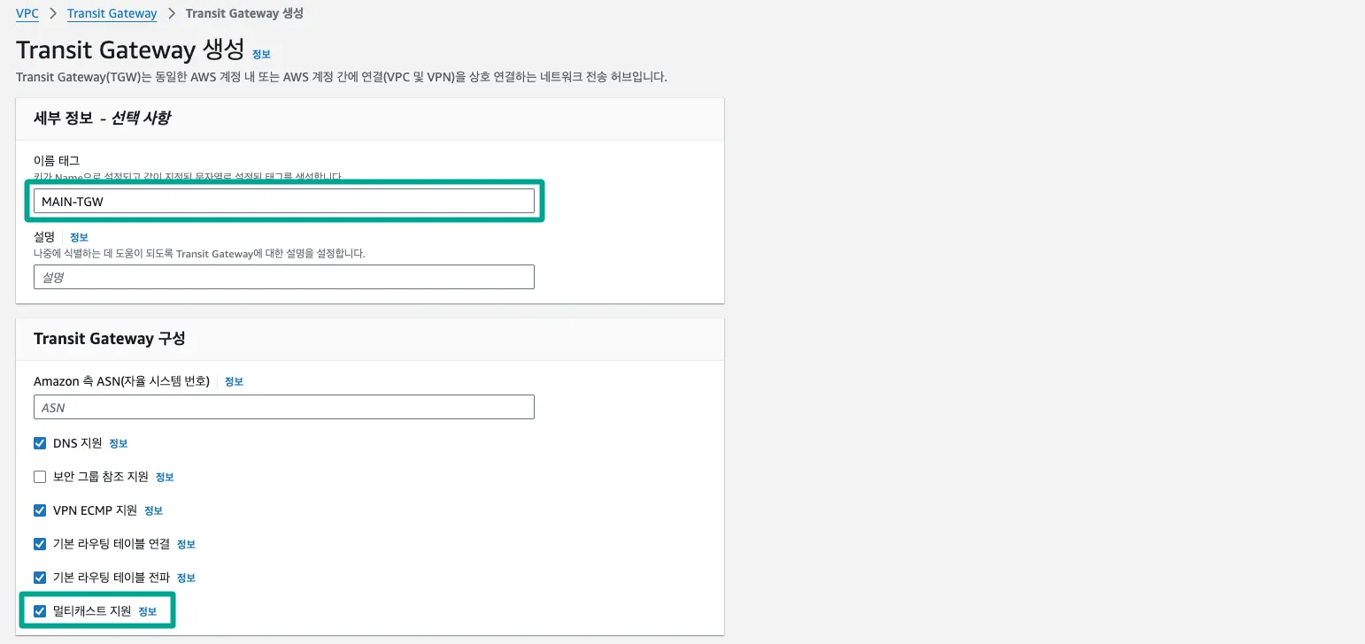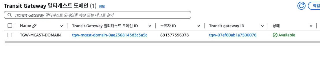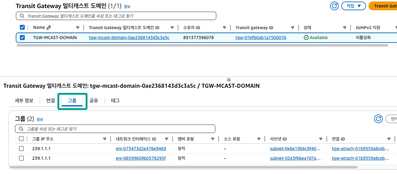 Multicast Domain : Multicast 트래픽을 처리할 TGW 지정