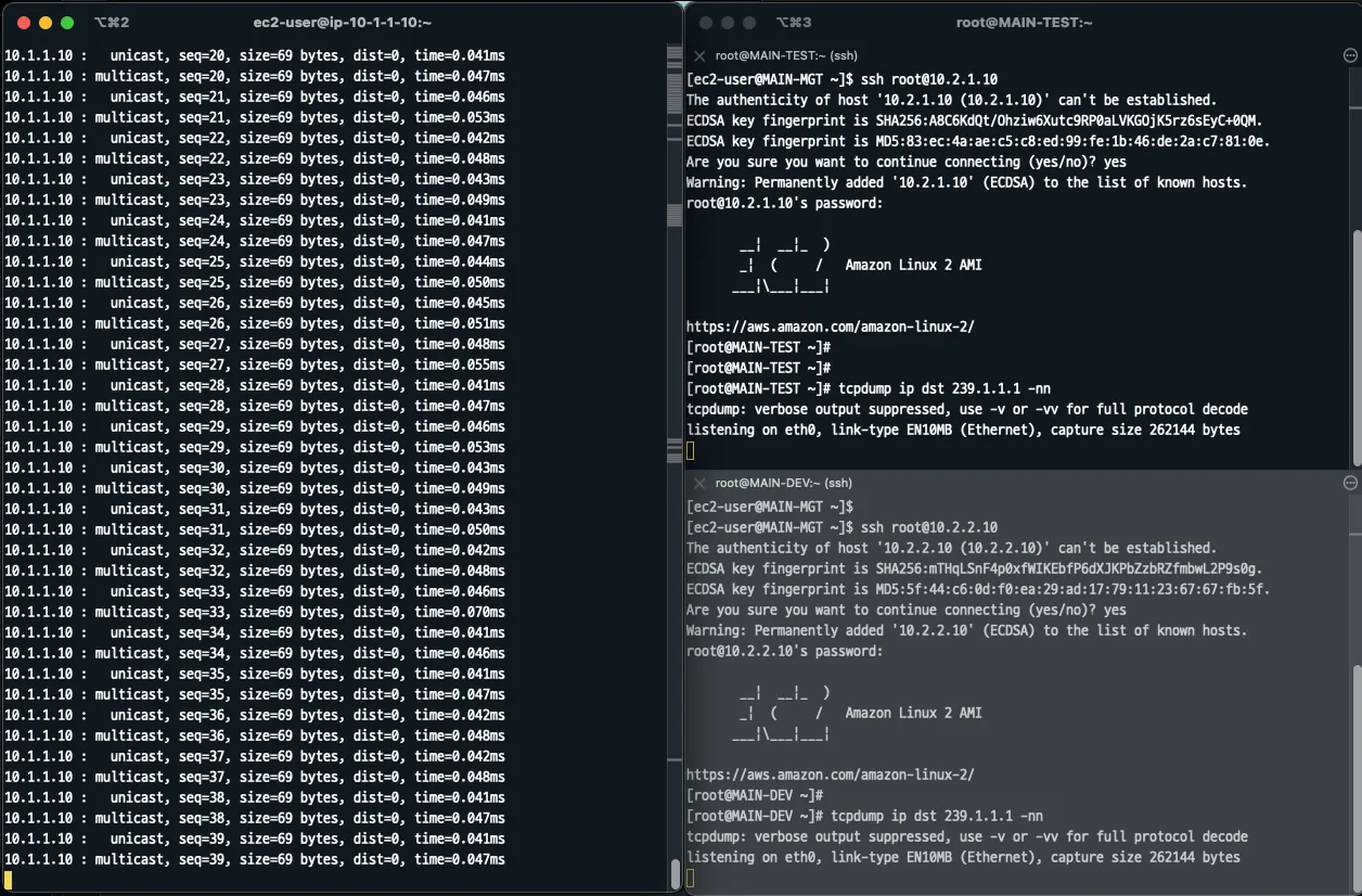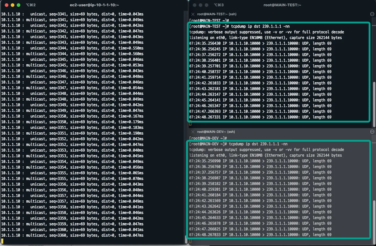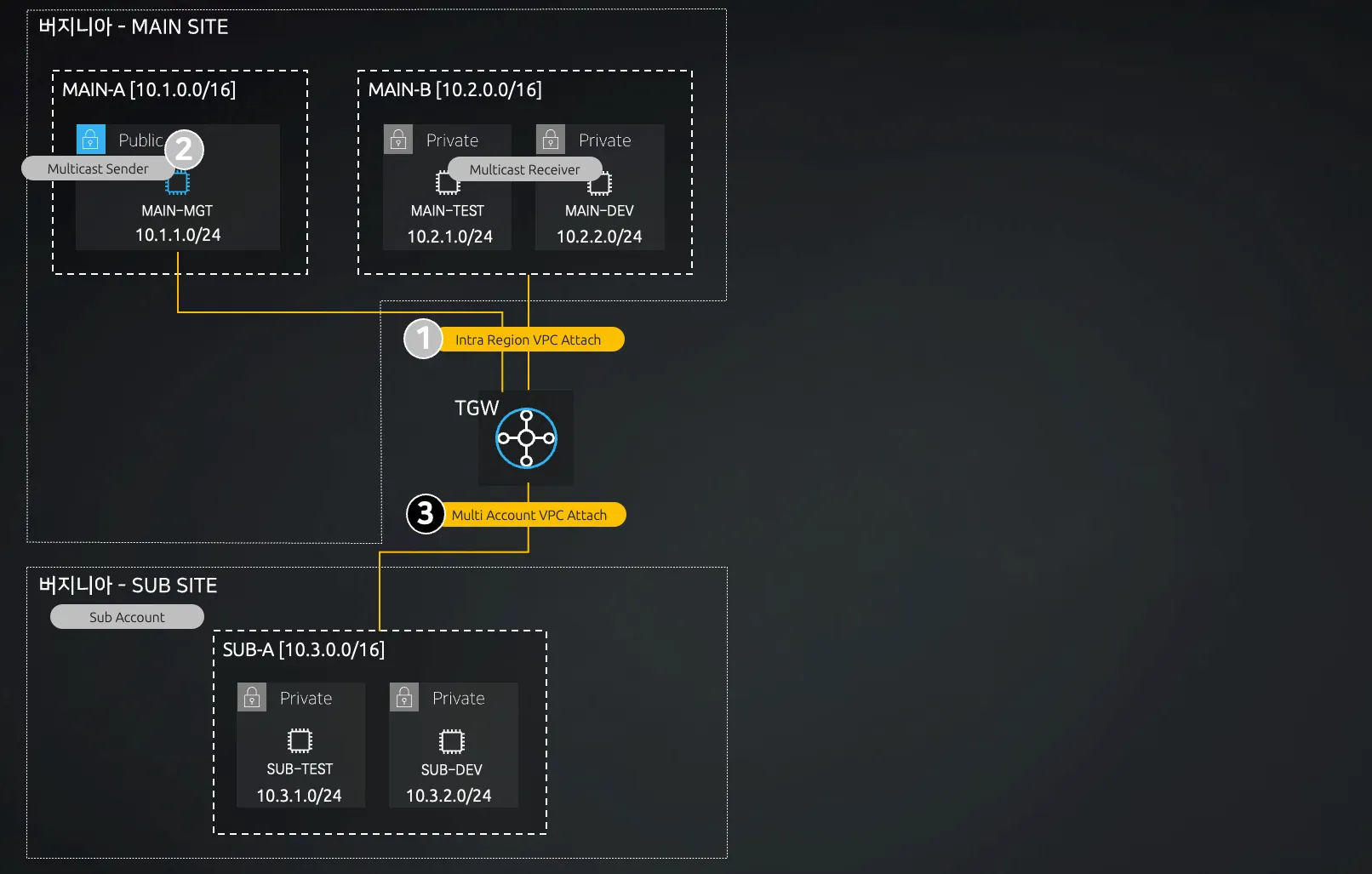 버지니아 북부 MAIN SITE에서 Multicast 통신 테스트