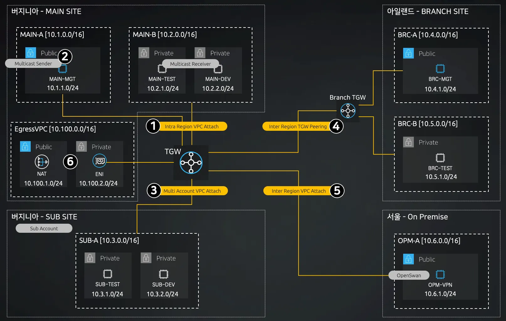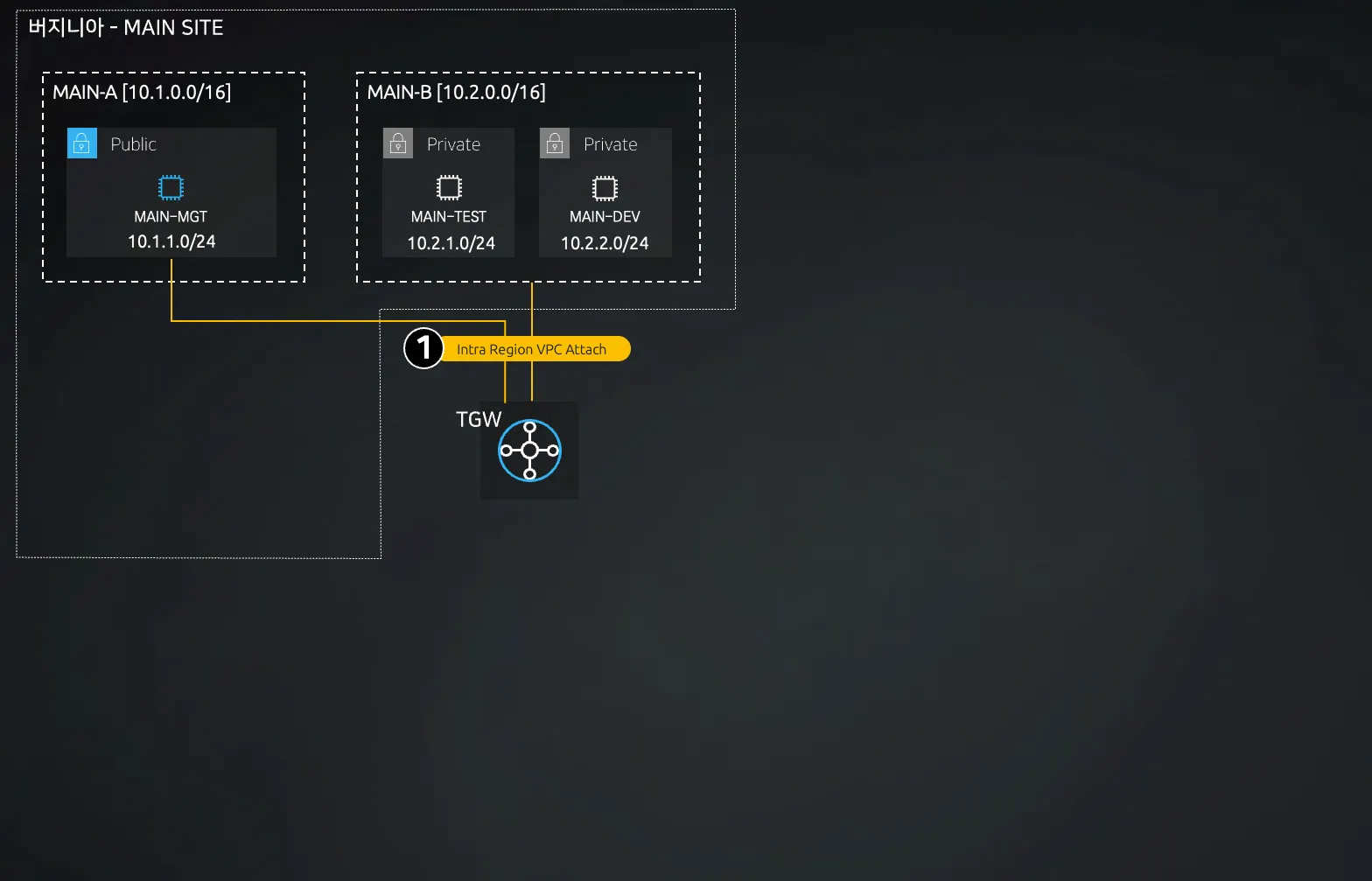 버지니아 북부에 MAIN SITE 구축 (동일 리전 내 VPC와 TGW를 생성하여 연결)