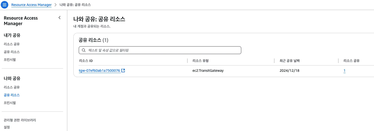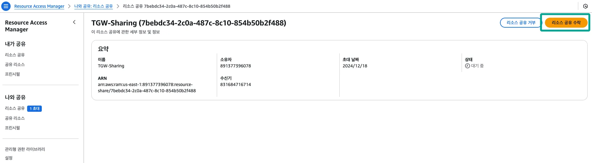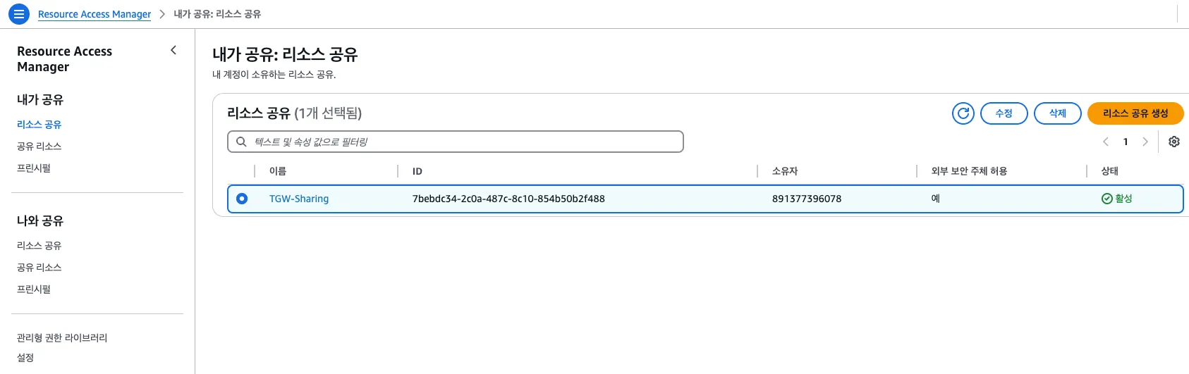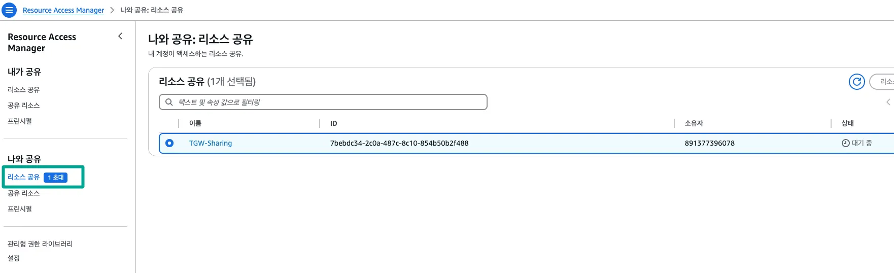 서브 계정 - Resource Access Manager에서 리소스 공유 나가기