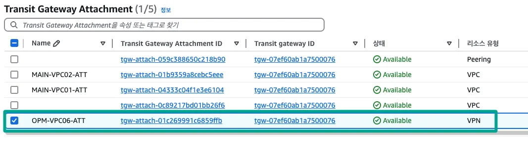 연결 선택 | MAIN-TGW 선택(vpn) |