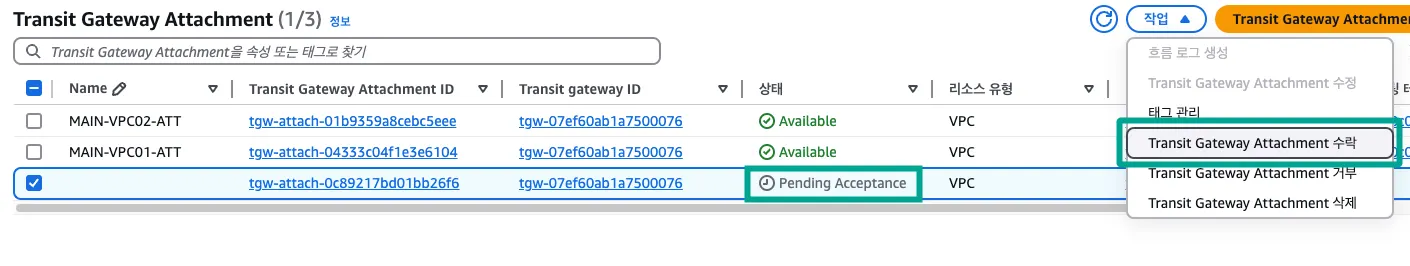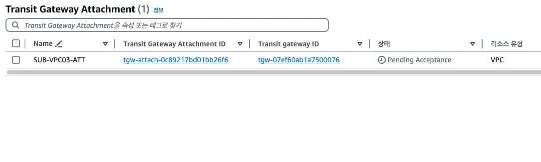 서브 계정 - TGW 연결에서 VPC Attachment 대상 삭제