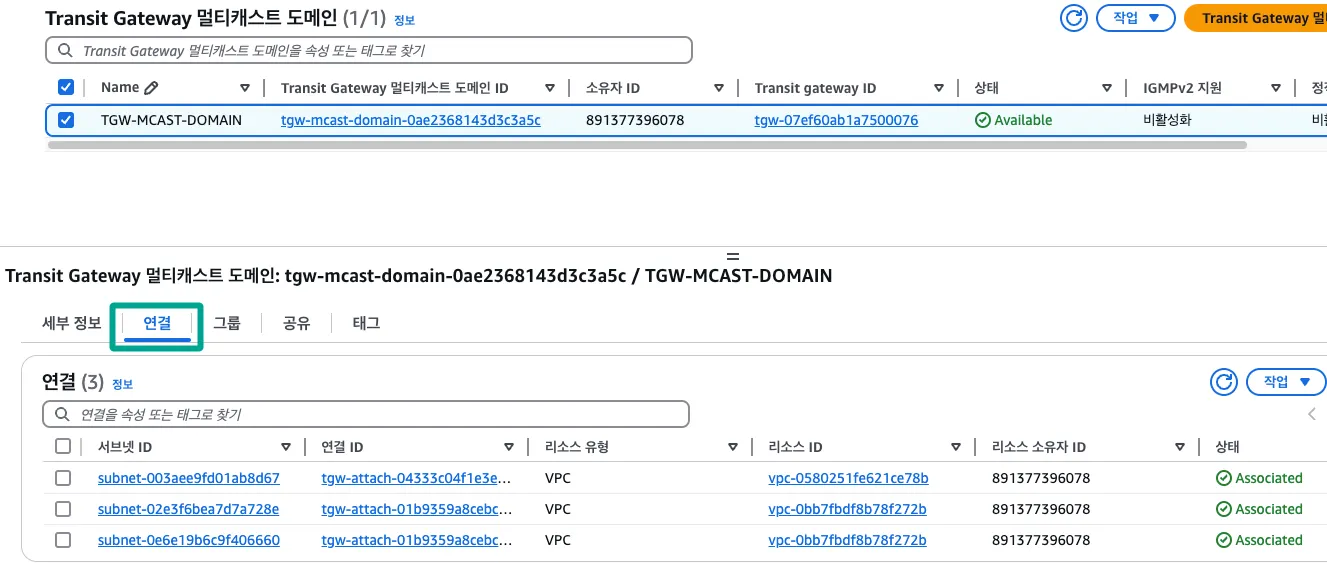 Multicast Associate : Multicast 트래픽을 처리할 TGW Attachment 지정