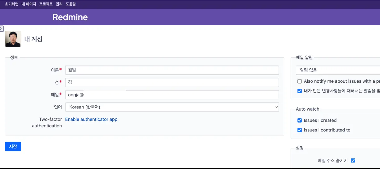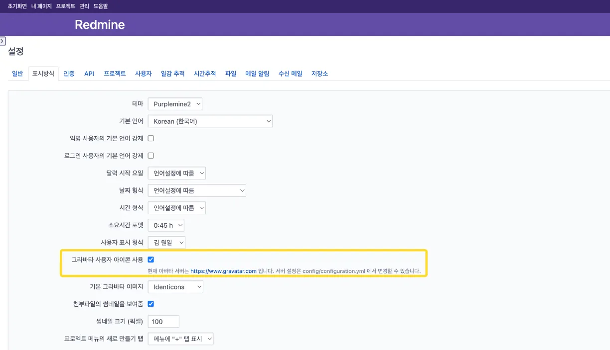 그라바타 사용자 아이콘 (Redmine 자체 기능)