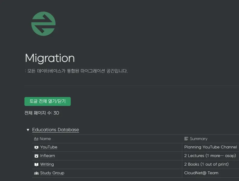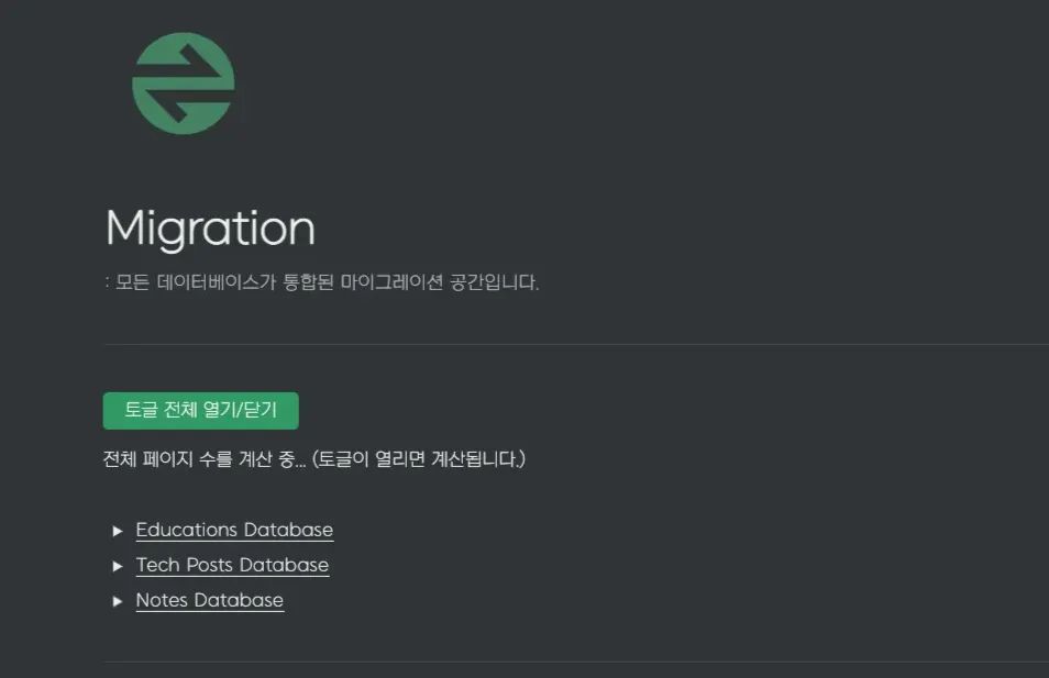 현재 구성된 데이터베이스를 모아둔 Migration 페이지에서 카운팅을 수행