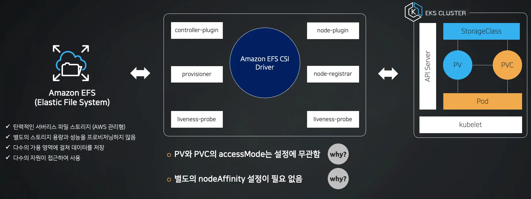 : Amazon EFS(Elastic File System)를 쿠버네티스 클러스터에서 사용할 수 있도록 지원하는 CSI 드라이버입니다.