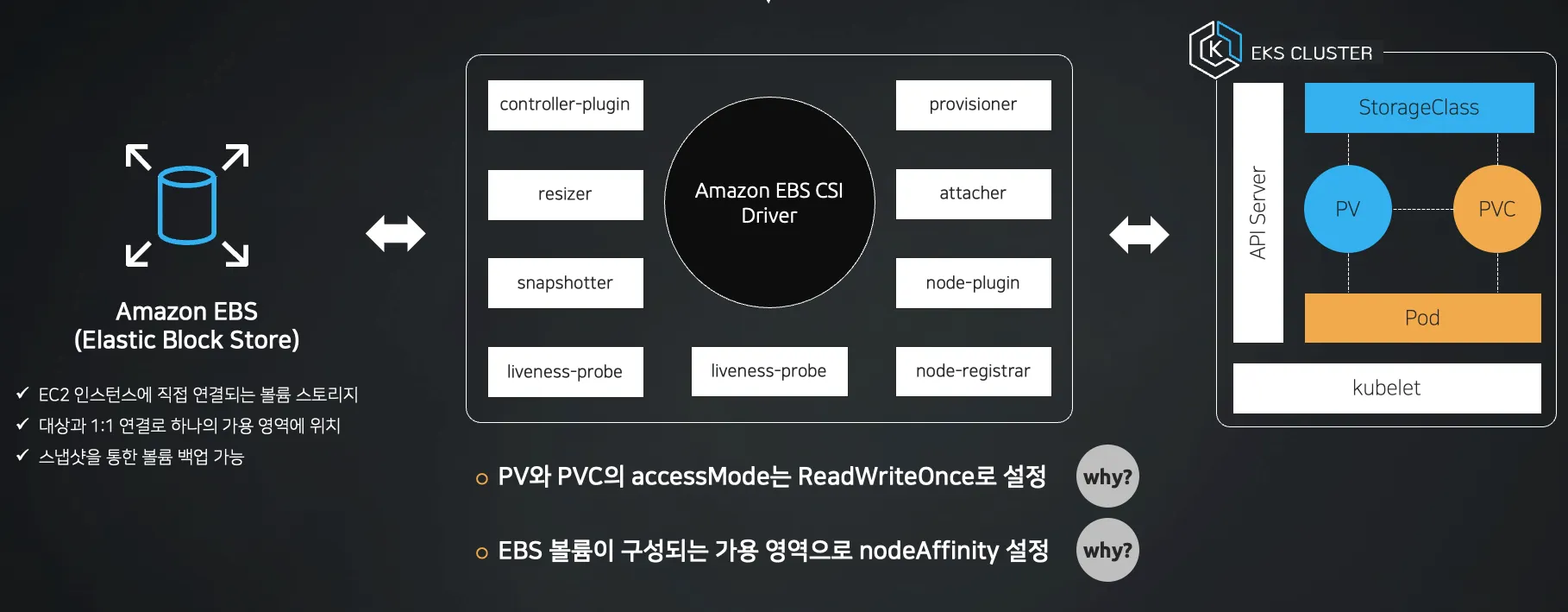 EBS 볼륨이 구성되는 가용 영역에 Node Affinity가 설정됩니다.